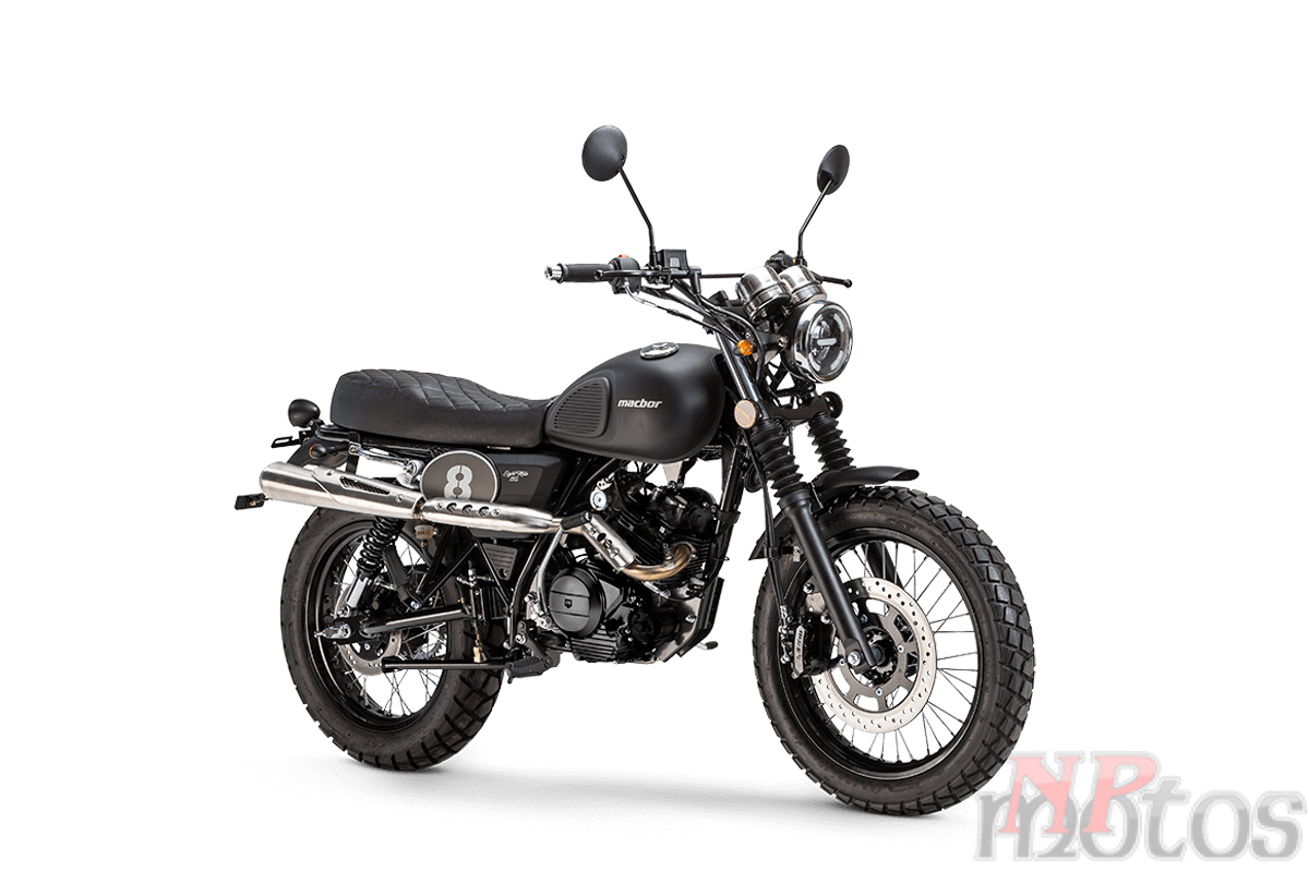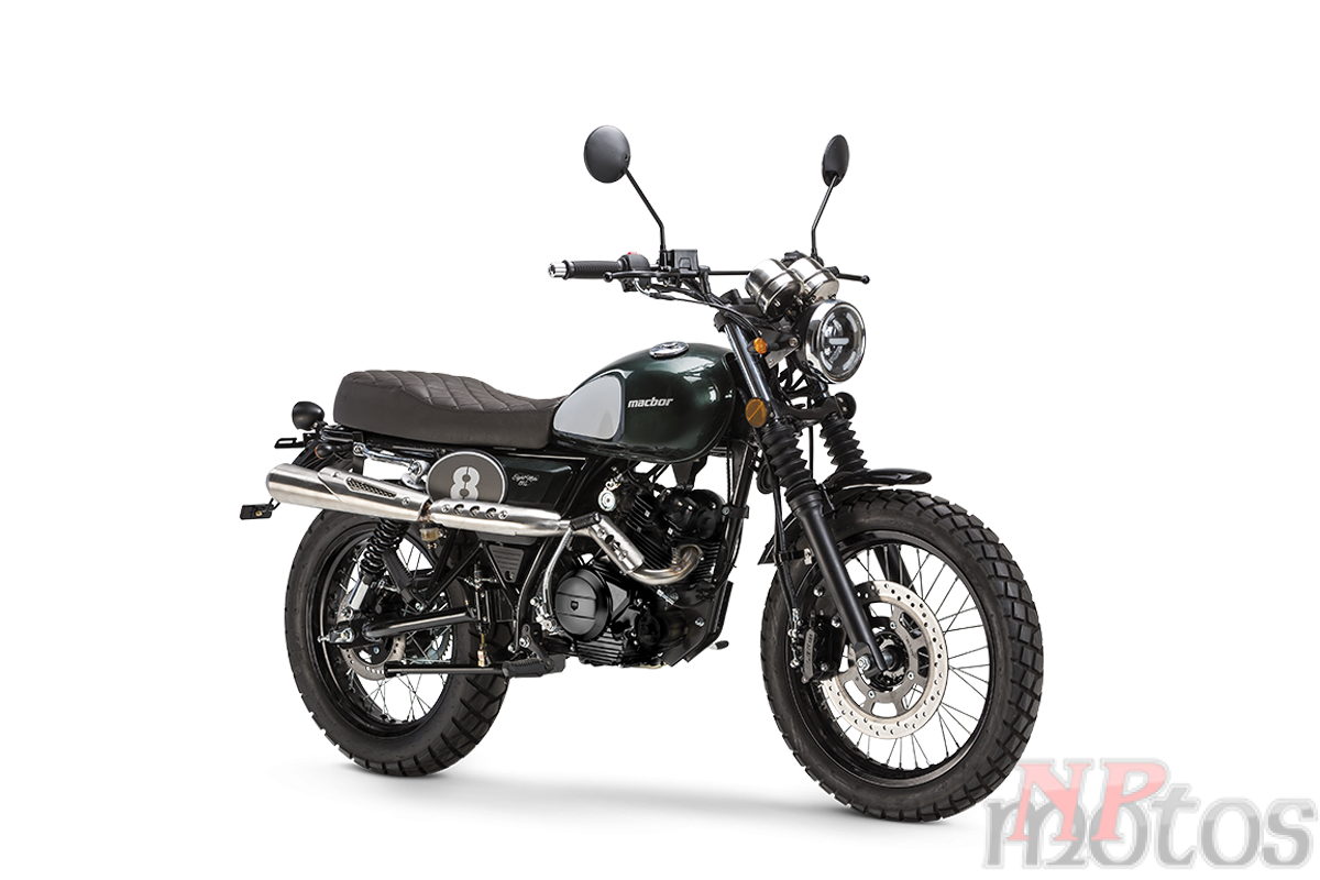 A Eight Mile da MACBOR evoca o espírito Scrambler dos anos 70 graças aos seus detalhes exclusivos, como o design característico do assento, as placas numéricas, as formas atraentes do depósito e o espetacular escape. Tudo isto especialmente concebido para proporcionar-te conforto em qualquer tipo de terreno.